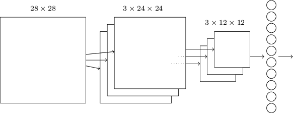 - Finally, all neurons in the pooling layer are connected to all 10 neurons in the output layer, reminiscent of our fully-connected network.